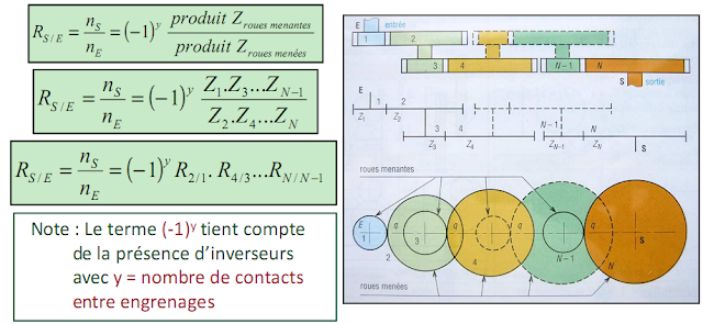Le rapport de transmission (réduction) est égal au produit des rapports de transmission de chacun des deux couples de roues. des deux couples de roues.