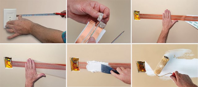 “Ce sont des conducteurs électriques de haute technologie qui, sous forme de ruban auto-adhésif, peuvent être appliqués sur les murs, les cloisons, les cloisons sèches, les dalles, les plafonds et les sols d’une manière rapide et pratique, sans laisser de relief sur les surfaces”. …….. ” Avec un revêtement isolant en polycarbonate résistant des deux côtés, les lames métalliques conductrices ont une large surface, optimisant le flux d’électricité et la dissipation thermique”. Source: Le secteur électrique
